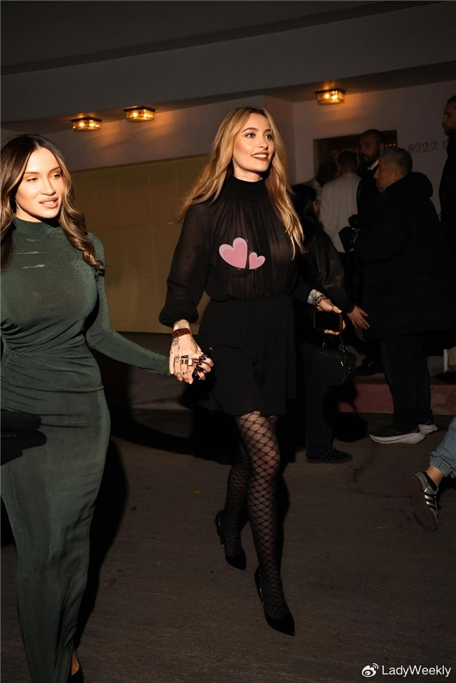 ,延续了全黑主题,克逊搭配尖头高跟鞋和黑色小提手包,感又高整体造型既神秘又性感。哥特女神  在配饰方面,帕丽斯在手腕上叠戴了多个手镯